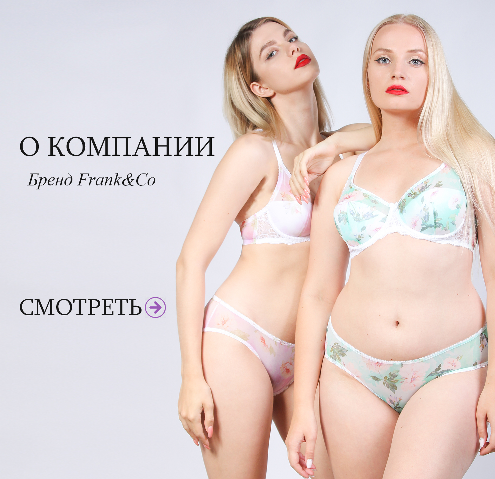 Белье бренда Frank&Co это полноценный монобренд. Модели с широким размерным рядом, ассортимент на все возрастные группы, конструкции моделей для различных форм груди и фигуры.