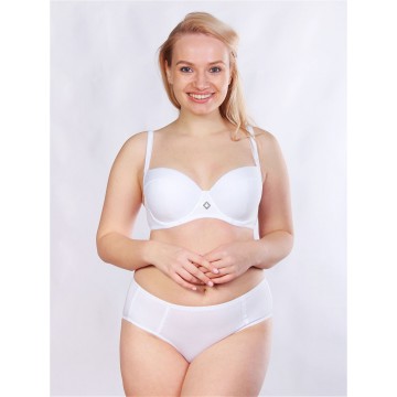 Бюстгальтер хлопковый с плотной чашкой из поролона на каркасах. Изготовлен из сетчатого полотна. Благодаря использованию только натуральных хлопковых полотен бюстгальтер обладает гипоаллергенными свойствами. Выполнен из эластичного хлопкового полотна. Чашка с горизонтальных швом приподнимает и округляет грудь. Внутри чашки кармашки для вкладышей пуш-ап. U-образное расположение бретелей. Бретели из эластичной ленты с регулировкой по длине. Застёжка сзади на крючки и петли, 2*3 крючка. Декоративный элемент – украшение на ластовице. Бюстгальтер хлопковый На каркасах Закрытая чашка с вкладышами пуш-ап Широкий стан (бочек) U-образное расположение бретелей Анатомическое положение груди Поддержка груди большого размера Размерный ряд: 70A 70B 70C 70D 75A 75B 75C 75D 75E 75F 80A 80B 80C 80D 80E 85A 85B 85C 85D Состав: хлопок 94%, полиамид 1%, эластан 5% Цветовая гамма: белый (10149), черный (10249), бежевый (10349)