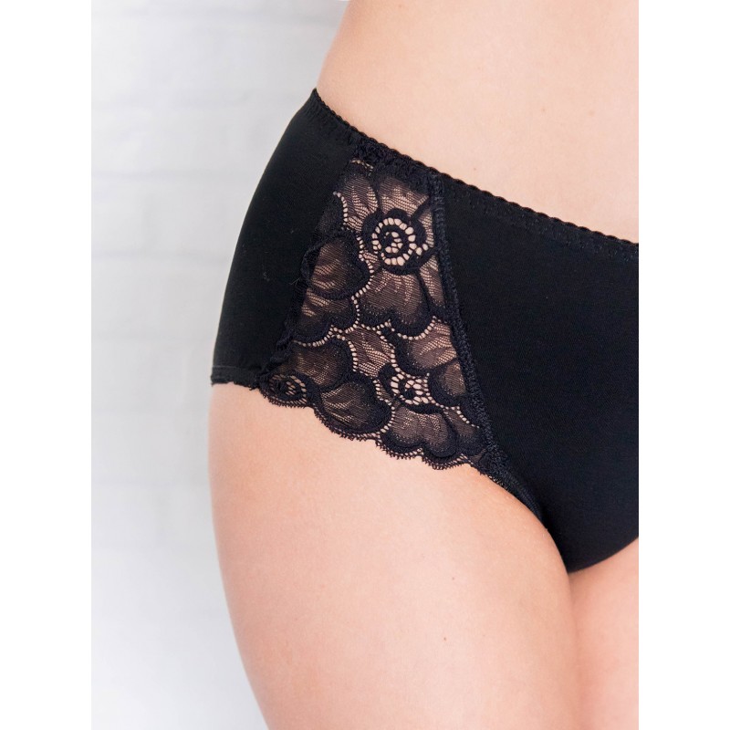 Высокие хлопковые трусы больших размеров. Трусы с высокой посадкой. Выполнены из эластичного хлопкового полотна в комбинации с кружевом. По верху изделия и ножкам эластичная резина. Низ изделия обработан плоским швом. Хлопковая ластовица. Трусы хлопковые Высокая посадка Плоские швы Хлопковая ластовица Размерный ряд: 102, 106, 110 Состав: хлопок 80%, полиамид 12%, эластан 8% Цветовая гамма: белый (20125), черный (20225), бежевый (20325)