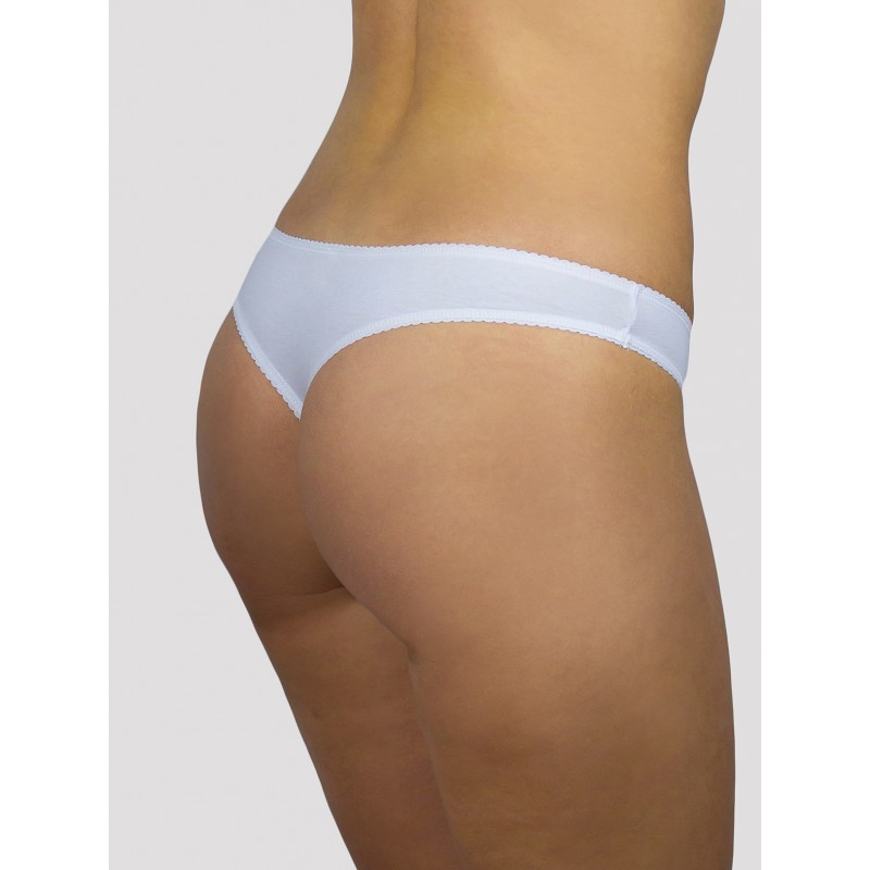 Трусы стринг с низкой линией талии. Выполнены из хлопкового полотна. Линия талии обработана эластичной лентой. Хлопковая ластовица.