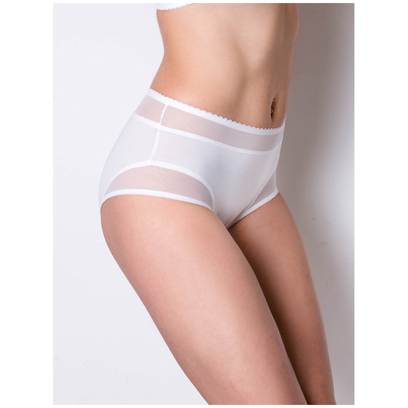 Хлопковые трусы больших размеров. Трусы макси с средней завышеной посадкой, классического кроя. Выполнены из эластичного хлопкового полотна в сочетании с плотным сетчатым  полотном. Линия талии обработана эластичной лентой, низ изделия обработан плоским швом. Хлопковая ластовица.
