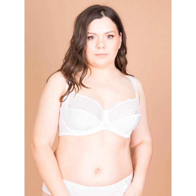 Бюстгальтер на мягкой чашке большой размерной группы. Чашка мягкая на каркасах. Выполнен из плотного микроволокна и кружева. Чашка с Т-образным швом, формирует и округляет грудь. Боковая допольнительная деталь, благодаря которой обеспечивается лучшая поддерждка и грудь собираеться к центру. Верх чашки декорирован кружевом. Расширенный стан выполнен из плотного функционального трикотажного полотна. U-образное положение бретелей с регулировкой по длине. Застёжка 2*3 крючка.