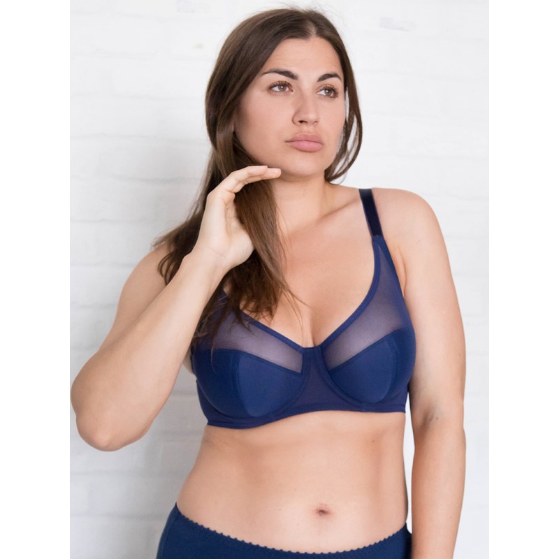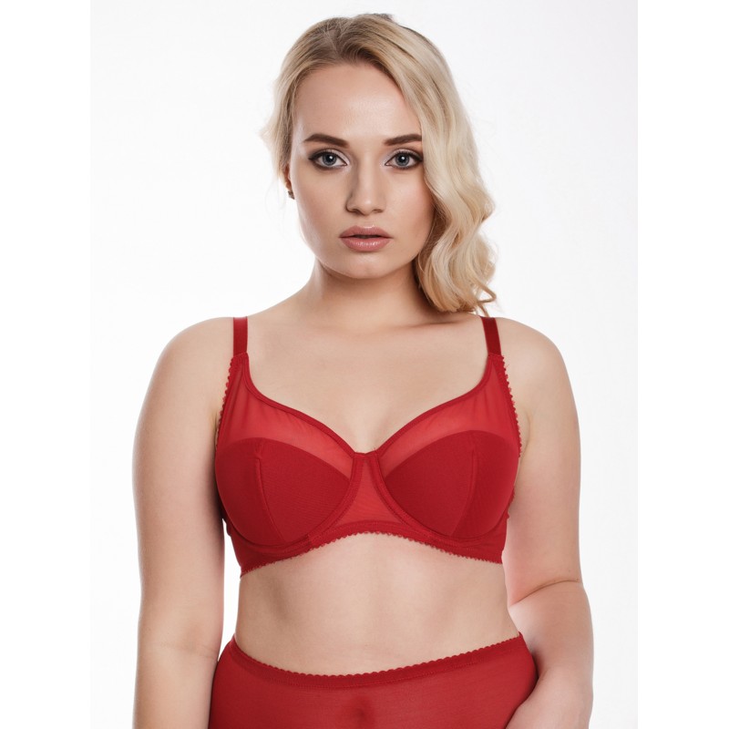 Классический бюстгальтер из сетки. Чашка полупоролон на каркасах. Крой бюстгальтера выполнен с учетом особенностей груди большого размера. Бюстгальтер изготовлен из функционального прозрачного сетчатого полотна. Чашка дублированная тонким поролоном, с Т-образным швом формирует и округляет грудь. U-образное положение бретелей с регулировкой по длине. Застёжка 2*3 крючка.